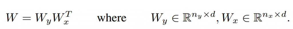 降低W的秩(带入之前通过矩阵乘法降秩的公式),得出如下目标函数: