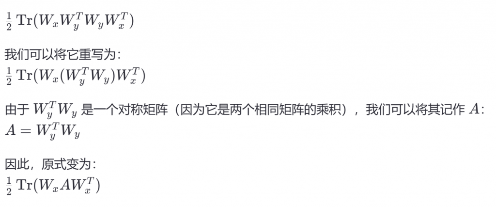 - Tips:Tr(WTW)的含义是把所有元素平方求和(非主对角线的元素都被舍弃了,恰好是相同的元素乘相同的元素),相当于SVM中的求范数的平方了。