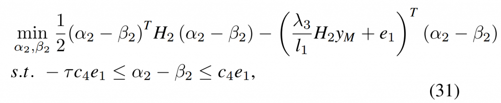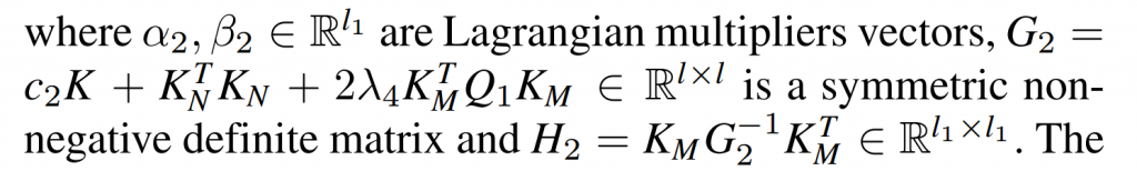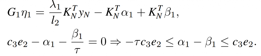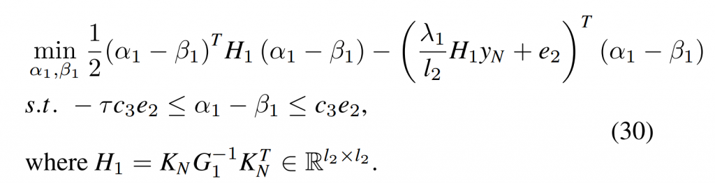 where α1, β1 ∈ Rl2 are the vectors of Lagrange multipliers.
